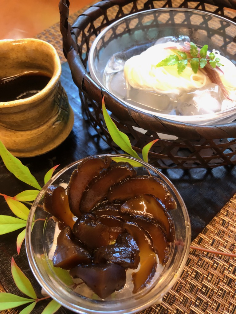 麺つゆにどんこ椎茸旨煮を入れて、お素麺と一緒にお召し上がりください。