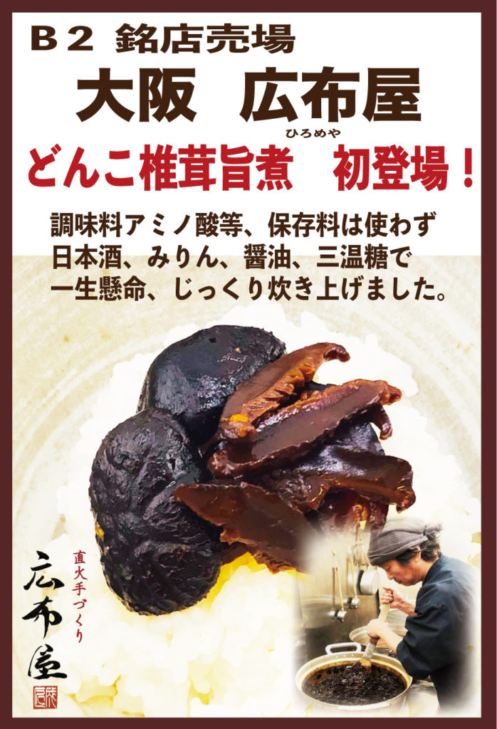8/23(金) 限定「どんこ椎茸旨煮 2袋入 」阪急うめだ本店 B1 一品奉仕コーナーにて販売します。