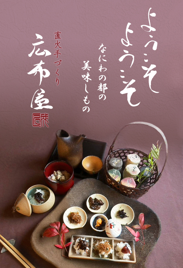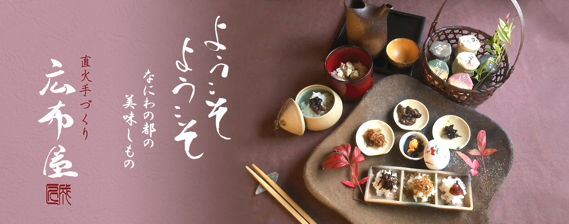 「広布屋」は、大阪の中心で生まれ育ち「大阪のいいものをつくって全国に届けたい」という思いから、直火手づくりの小さな釜で炊きはじめました。無添加・直火手づくりの「おおさかおもたせ」をお届けしています。一釜づつ丁寧に炊き上げた、調味料アミノ酸等、保存料を使わない「おおさかもたせ」「強肴」をぜひお召し上がりくださいませ。